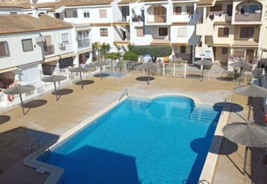 Se trata de un bonito apartamento de una habitación que se encuentra en muy buen estado para entrar a vivir. Es una vivienda con una habitación doble con armario empotrado, un cuarto de baño con ducha hecho recientemente y una cocina también nueva. Tiene un amplio salón comunicado con la terraza por unos grandes ventanales que hace el espacio mucho más luminoso y acogedor. Se vende totalmente amueblado y con todos los electrodomésticos. Es una comunidad con piscina y espacio exterior muy bonito y cuidado.